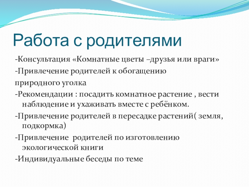 -Рекомендации : посадить комнатное растение , вести наблюдение и ухаживать вместе с ребёнком.