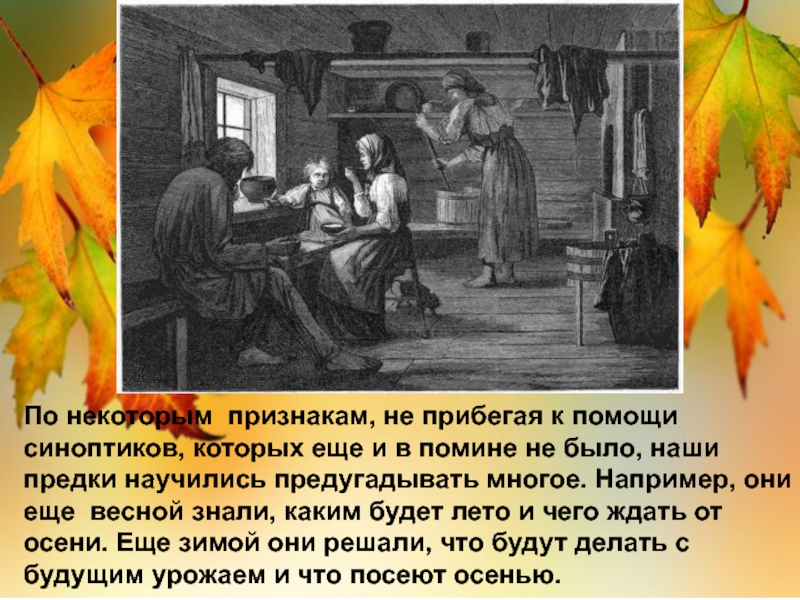 в помине не было, наши предки научились предугадывать многое. Например, они еще весной знали, каким будет лето и чего ждать от осени. Еще зимой они решали, что будут делать с будущим урожаем и что посеют осенью.