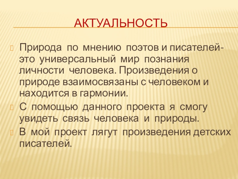 Природа по мнению поэтов и писателей- это универсальный мир познания личности