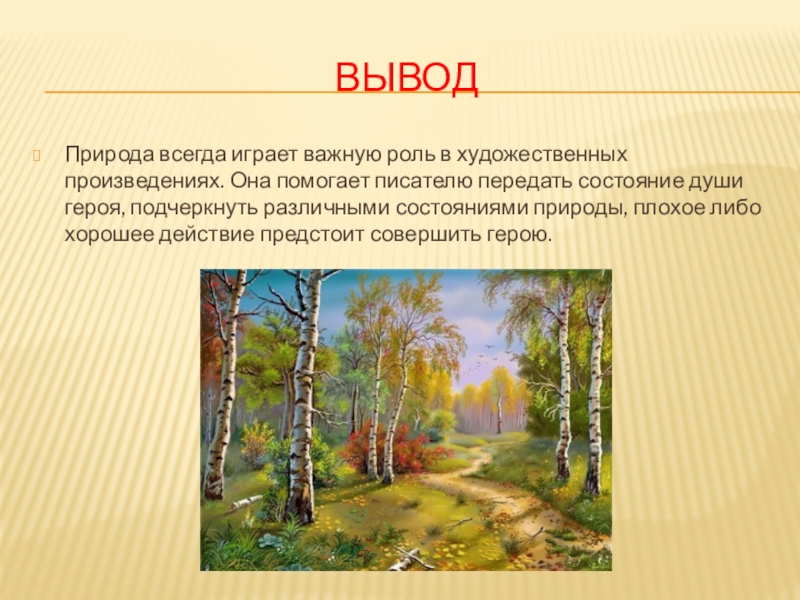 Природа всегда играет важную роль в художественных произведениях. Она помогает писателю