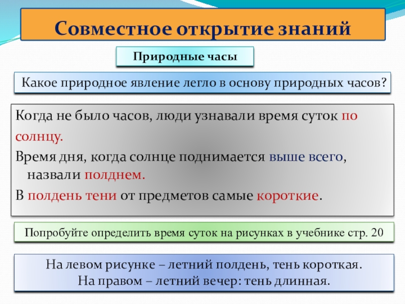 Попробуйте определить время суток на рисунках в учебнике стр. 20