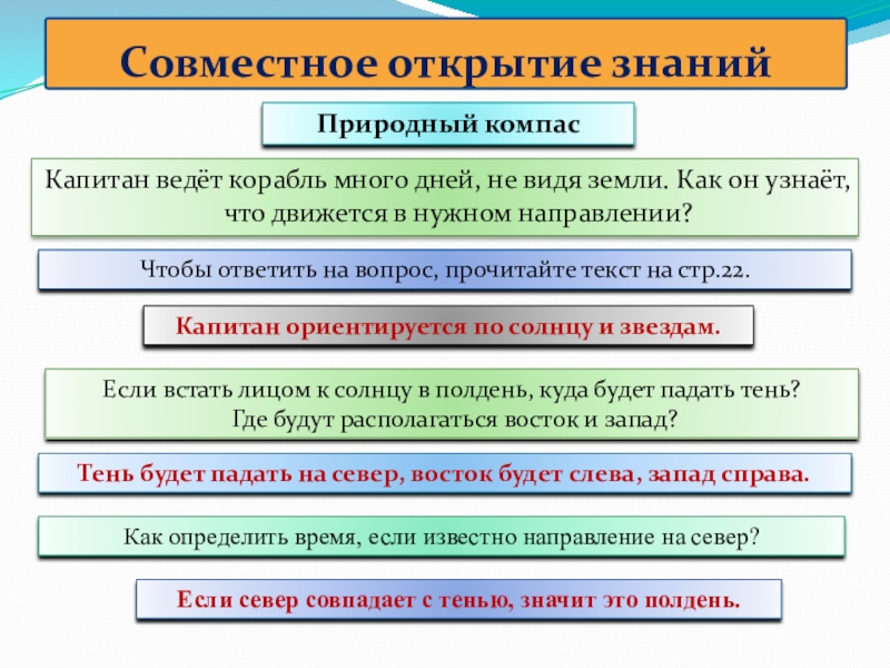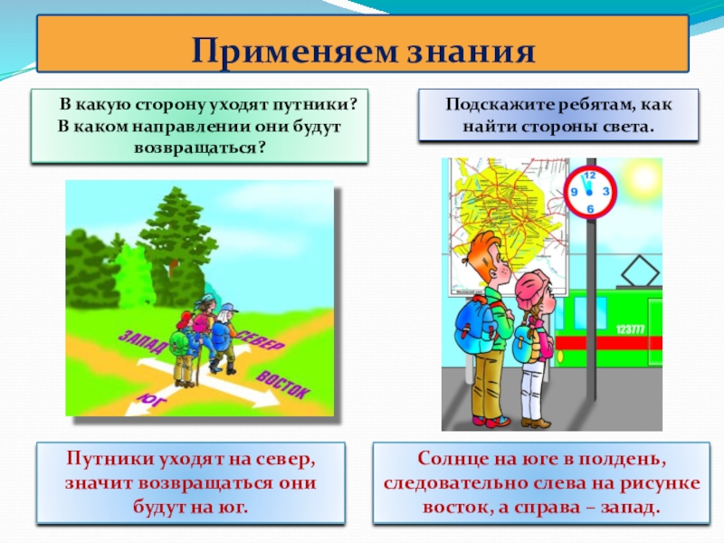 Найдите стороны света в классе.