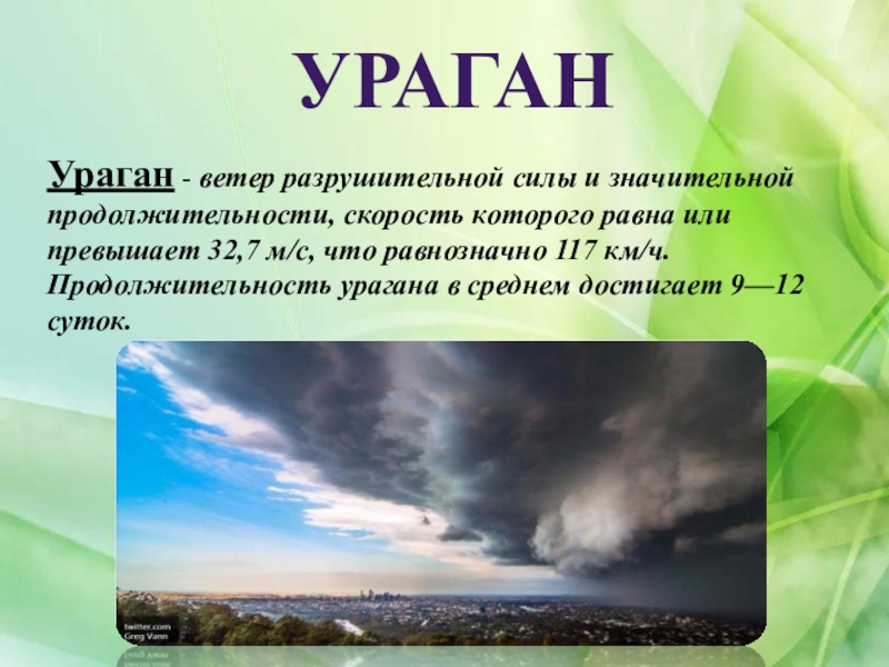 Ураган - ветер разрушительной силы и значительной продолжительности, скорость которого равна или