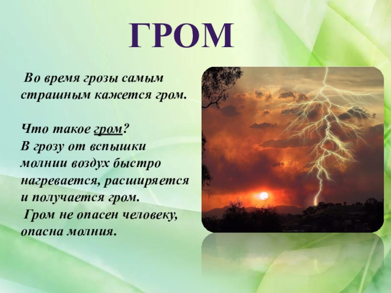 вспышки молнии воздух быстро нагревается, расширяется и получается гром.