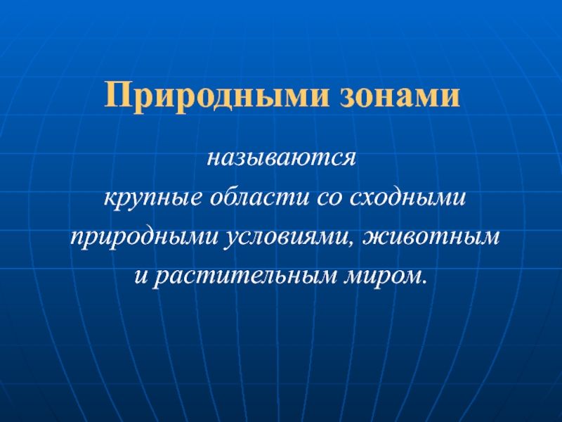 Природными зонами называются крупные области со сходными природными условиями, животными растительным миром.