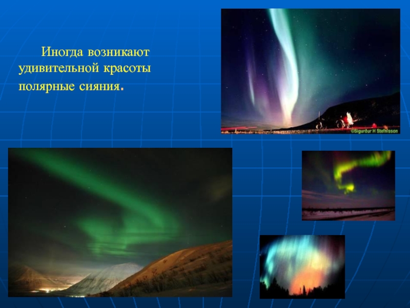Иногда возникают удивительной красотыполярные сияния.