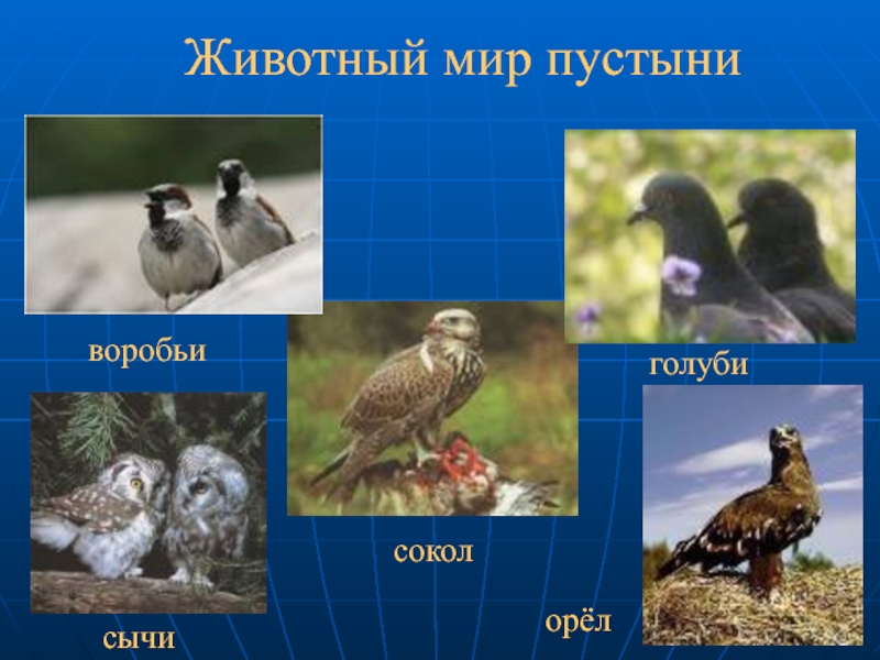 Животный мир пустыниворобьисычиголубисоколорёл