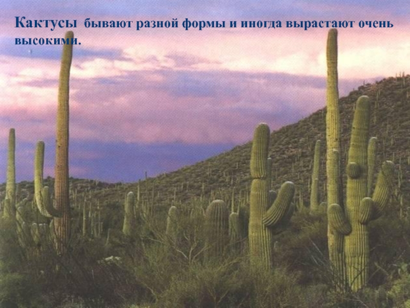 Слайд 55Кактусы бывают разной формы и иногда вырастают очень высокими.