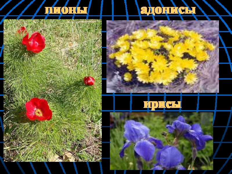 пионы        адонисы    ирисы