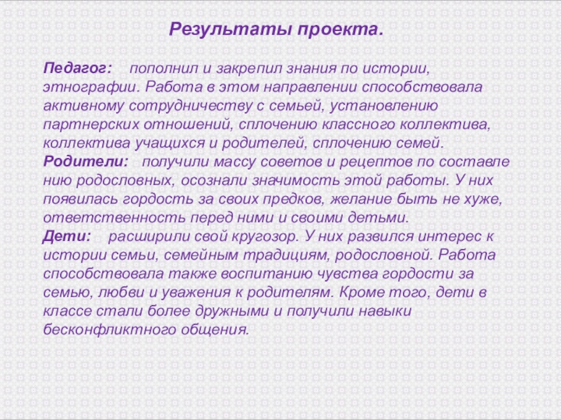 -изучить, какое влияние оказало создание родословной на развитие учащихся.