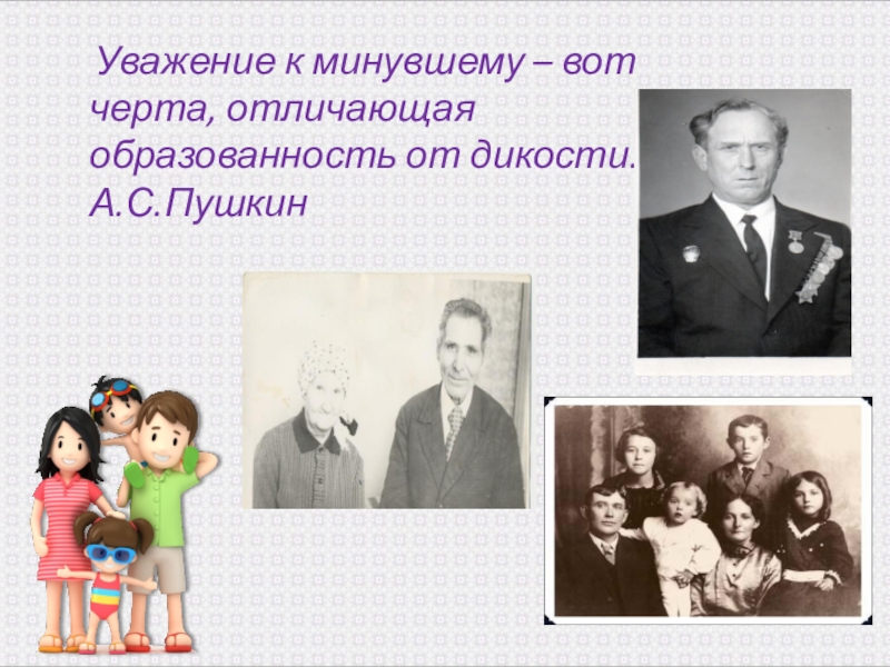 - воспитывать любовь и уважительное отношение к родителям и предкам;