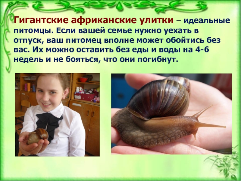 Они откладывают яйца, из которых через 4-8 недель появляются маленькие улиточки.