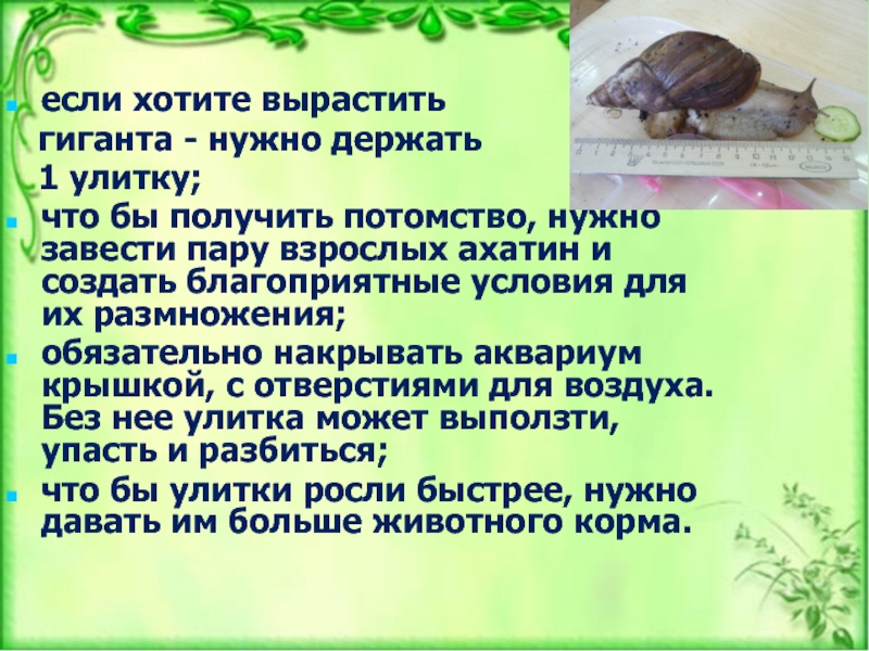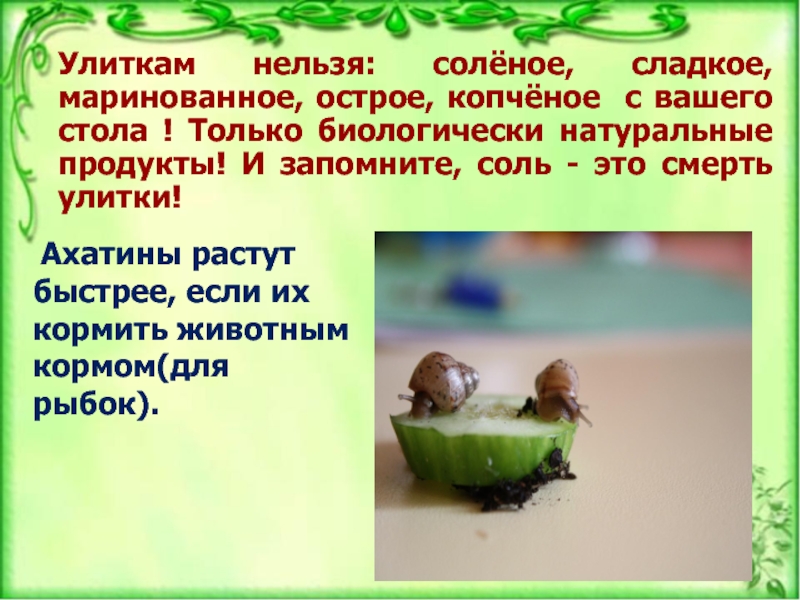 Ахатины растут быстрее, если их кормить животным кормом(для рыбок).