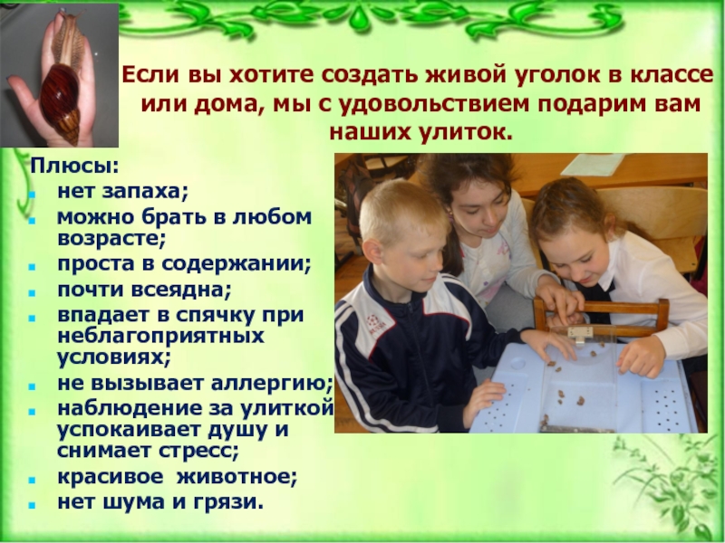 наблюдение за улиткой успокаивает душу и снимает стресс;