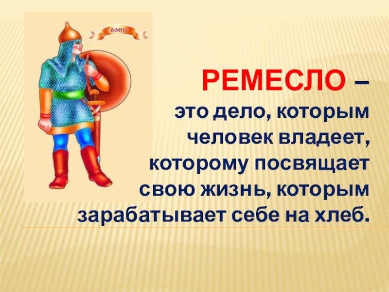 РЕМЕСЛО – это дело, которым человек владеет, которому посвящает свою жизнь, которым зарабатывает себе на хлеб.