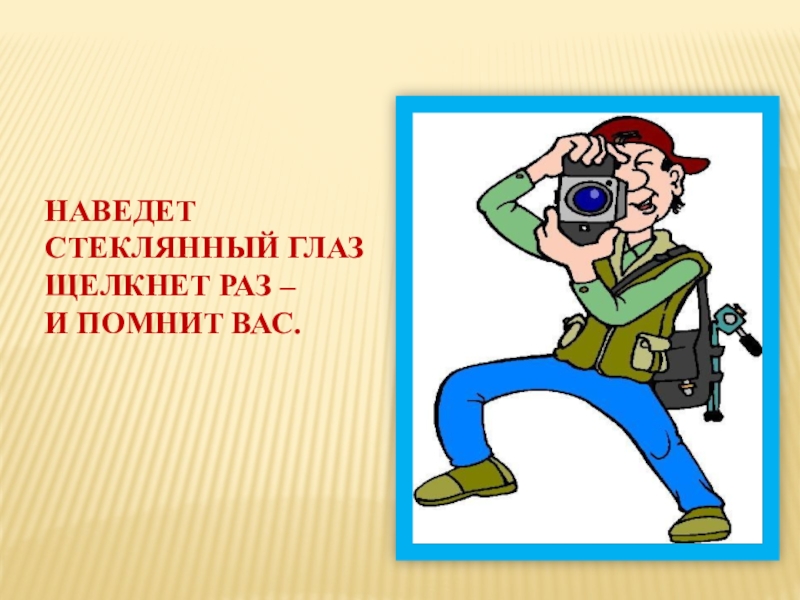 НАВЕДЕТ СТЕКЛЯННЫЙ ГЛАЗЩЕЛКНЕТ РАЗ –И ПОМНИТ ВАС.