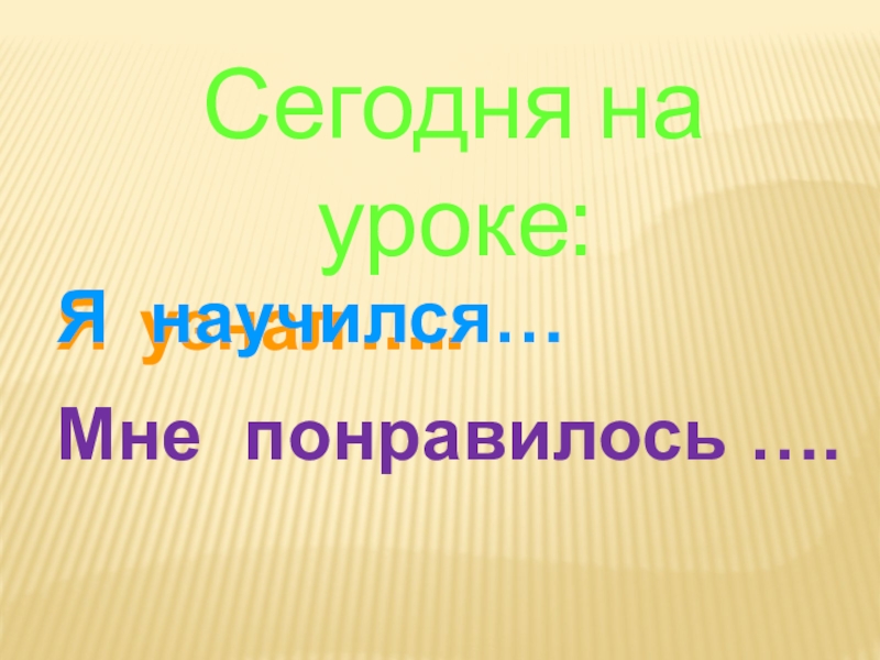 Сегодня на уроке:Я узнал …..Я научился…Мне понравилось ….