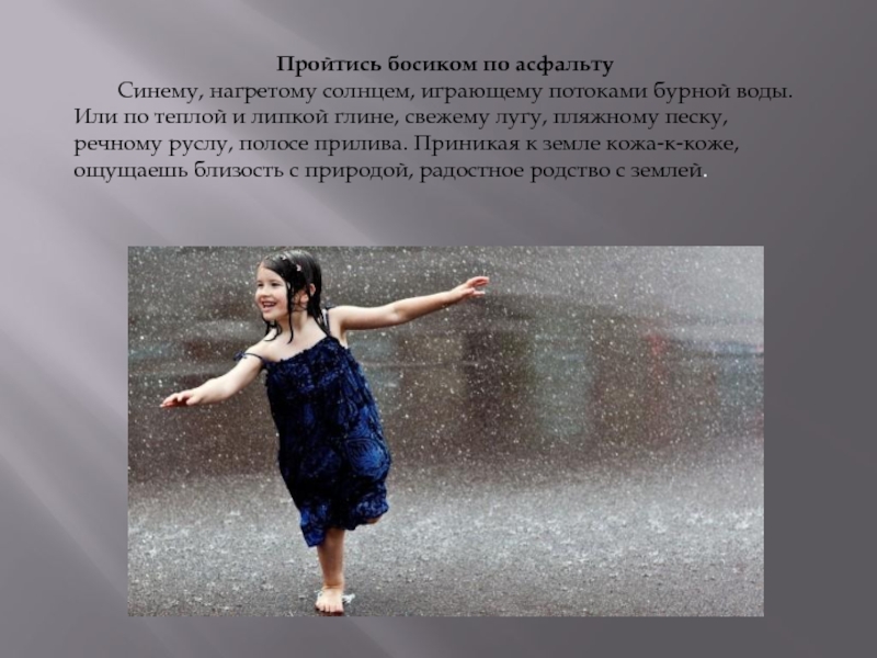 Слайд 6Пройтись босиком по асфальту