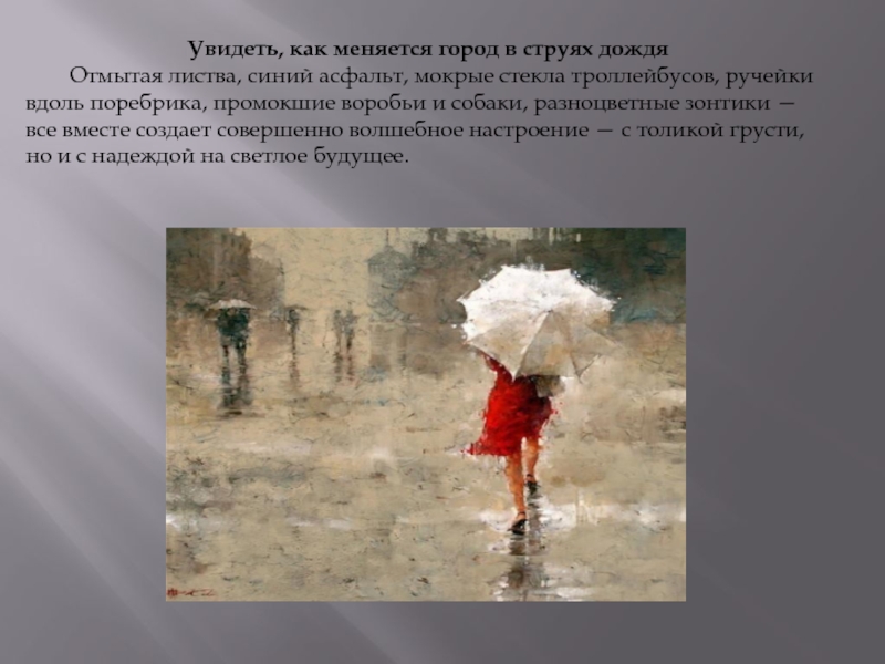 Слайд 18Как прекрасны прогулки под дождем
