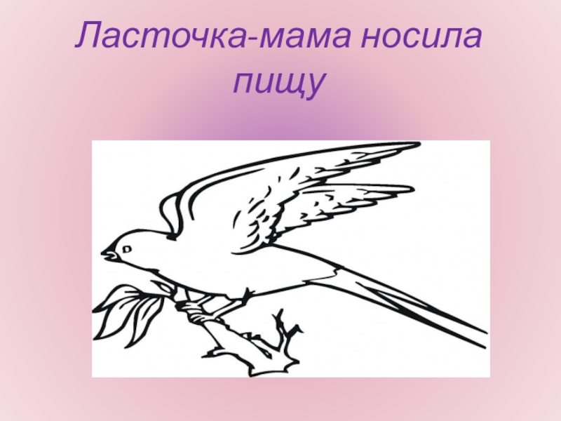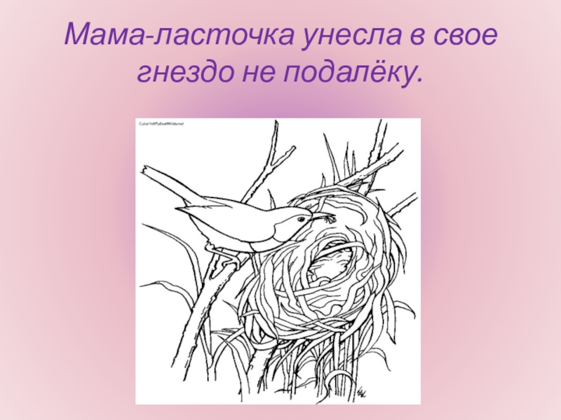 Слайд 13Мама-ласточка унесла в свое гнездо не подалёку.