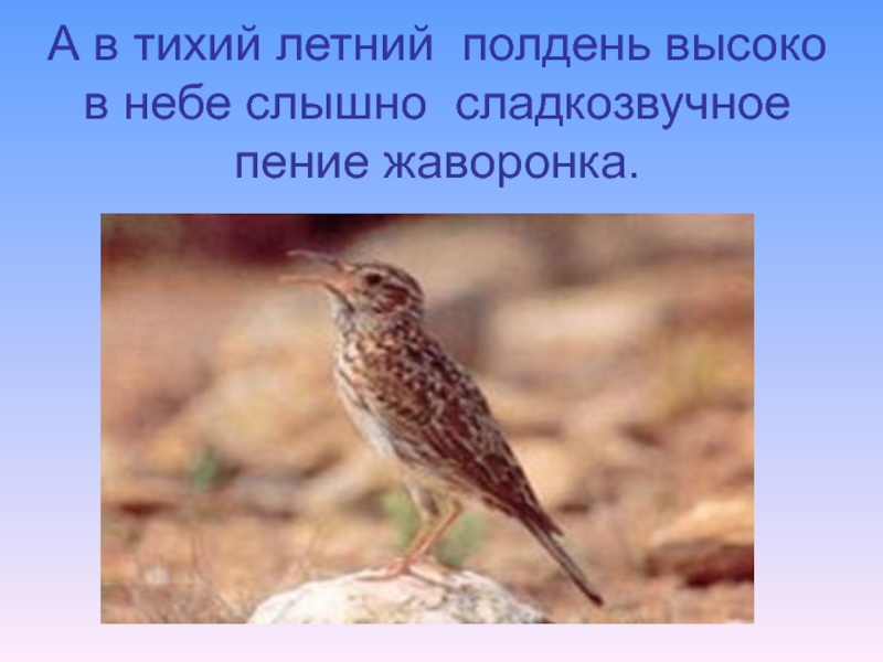 Слайд 13А в тихий летний полдень высоко в небе слышно сладкозвучное пение