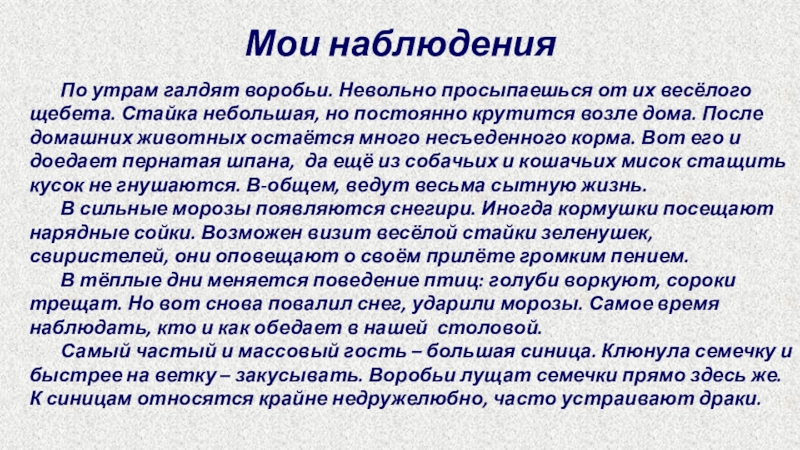 Проведя наблюдения за птицами, можно сделать следующие выводы: