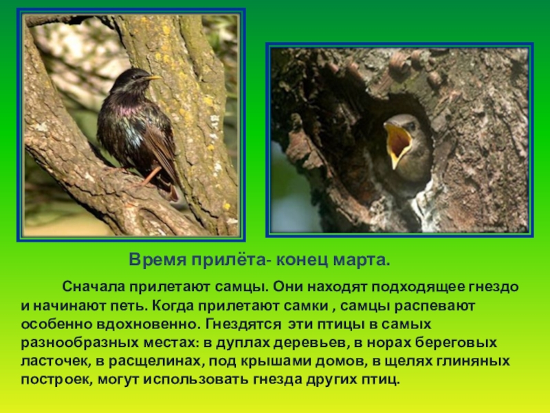 Время прилёта- конец марта.
