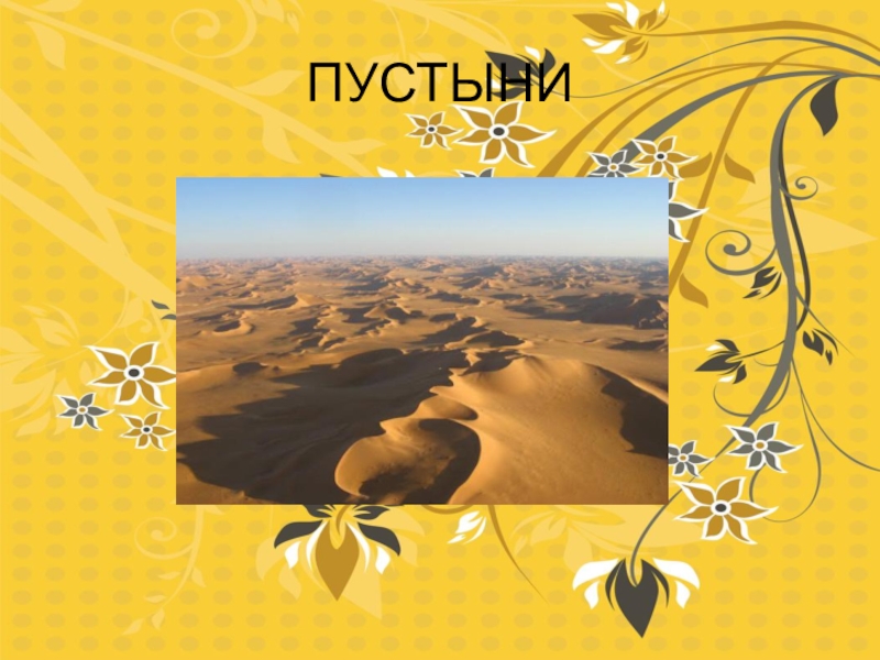 Территориальное расположение.Пустыни – это жаркие и засушливые области земли.Самые обширные пустыни мира – Сахара в Африке, Виктория