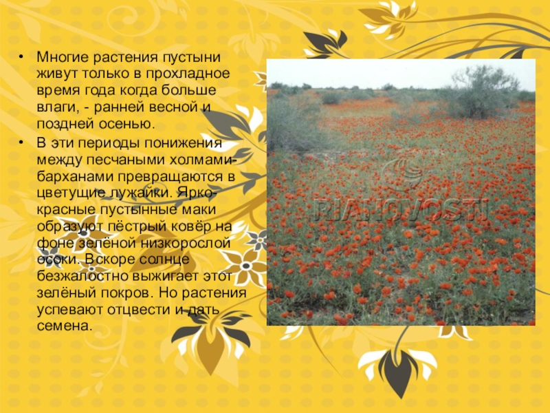 Многие растения пустыни живут только в прохладное время года когда больше влаги, - ранней весной и поздней