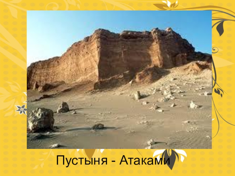 Территориальное расположение.Пустыни – это жаркие и засушливые области земли.Самые обширные пустыни мира – Сахара в Африке, Виктория в Австралии, Атаками в Южной Америке.Самые большие пустыни на материке Евразия расположены в Средней Азии. Это Каракумы и Кызылкум.