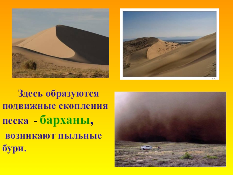 Здесь образуются подвижные скопления песка - барханы,