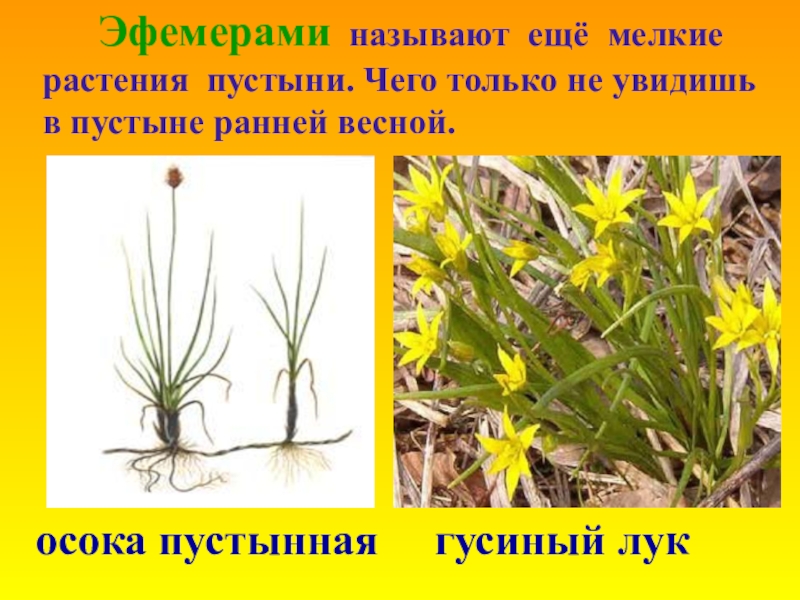 Слайд 23 Эфемерами называют ещё мелкие растения пустыни. Чего только