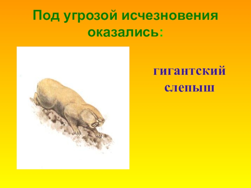 Слайд 38Под угрозой исчезновения оказались: