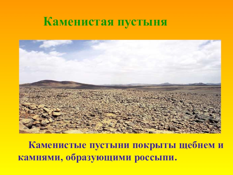 Каменистые пустыни покрыты щебнем и
