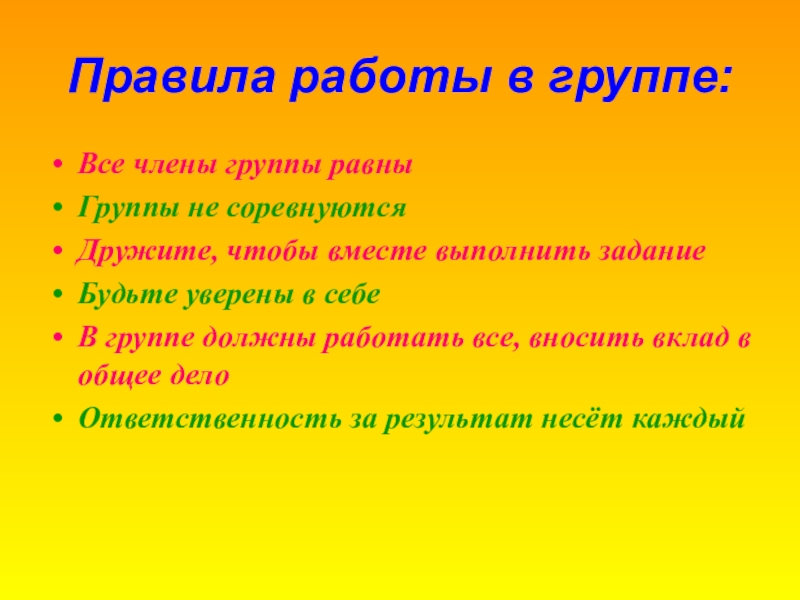 Слайд 12Правила работы в группе: