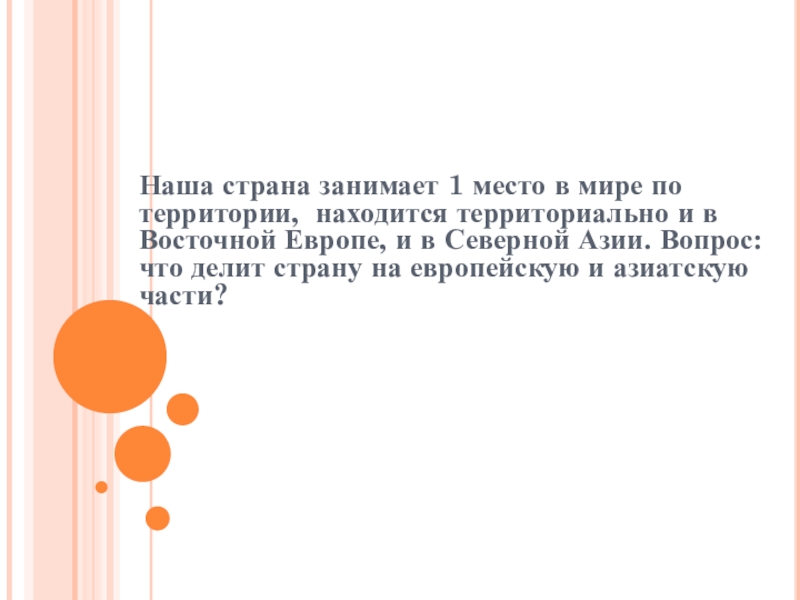 и в Восточной Европе, и в Северной Азии. Вопрос: что делит страну на европейскую и азиатскую части?