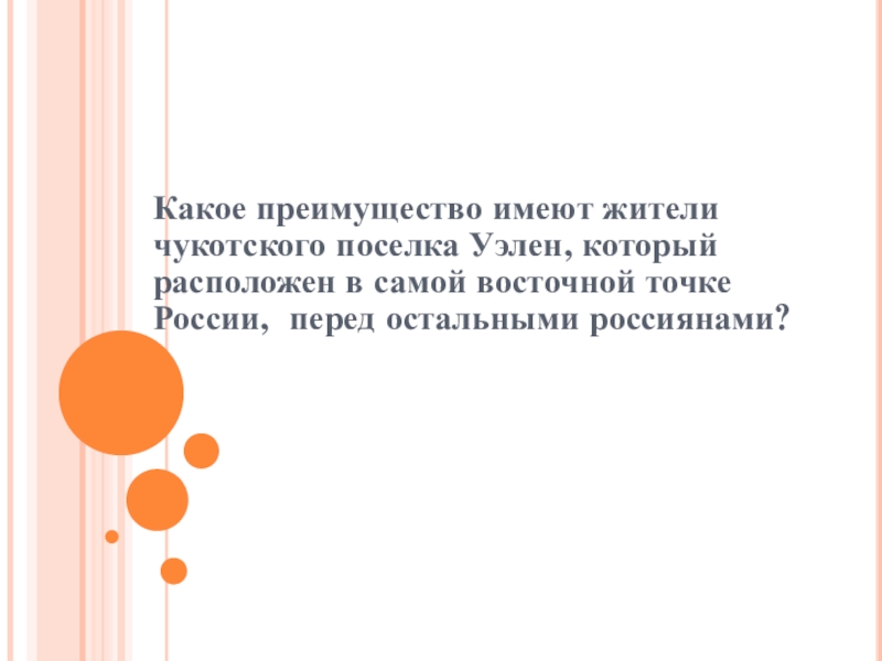 Слайд 10Какое преимущество имеют жители чукотского поселка Уэлен, который расположен в самой