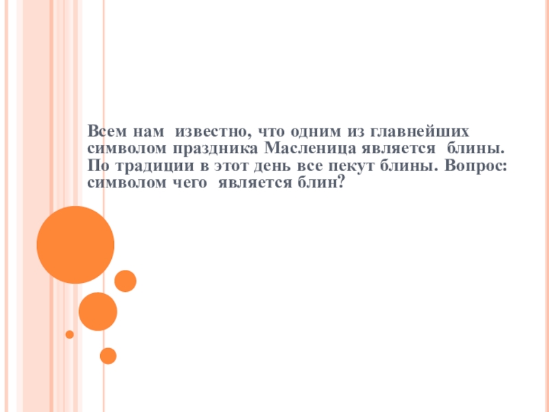 блины. По традиции в этот день все пекут блины. Вопрос: символом чего является блин?