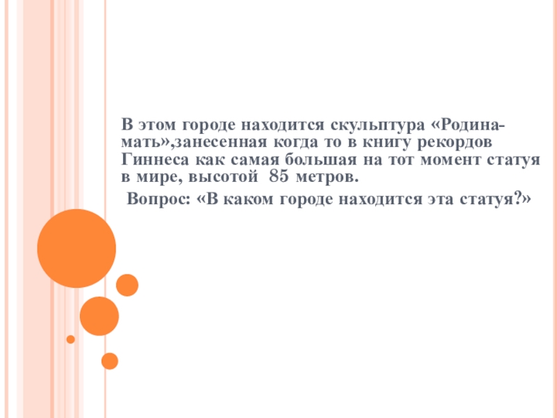 Слайд 4В этом городе находится скульптура «Родина-мать»,занесенная когда то в книгу рекордов