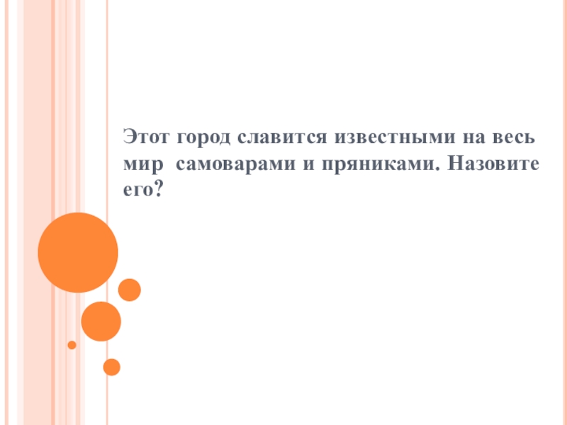 Слайд 12Этот город славится известными на весь мир самоварами и пряниками. Назовите