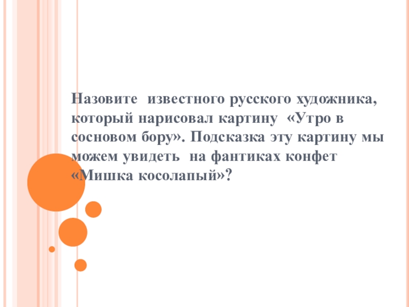 Слайд 28Назовите известного русского художника, который нарисовал картину «Утро в сосновом бору».