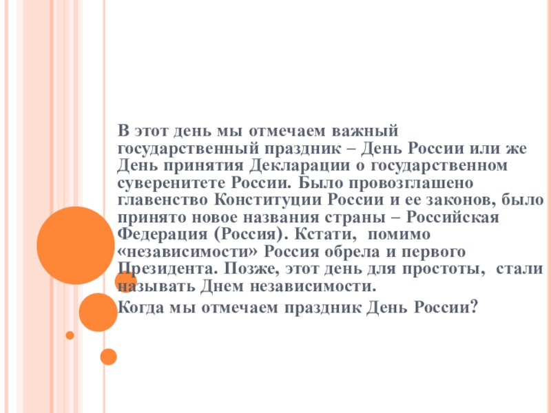 В этот день мы отмечаем важный государственный праздник – День России или же День принятия Декларации о