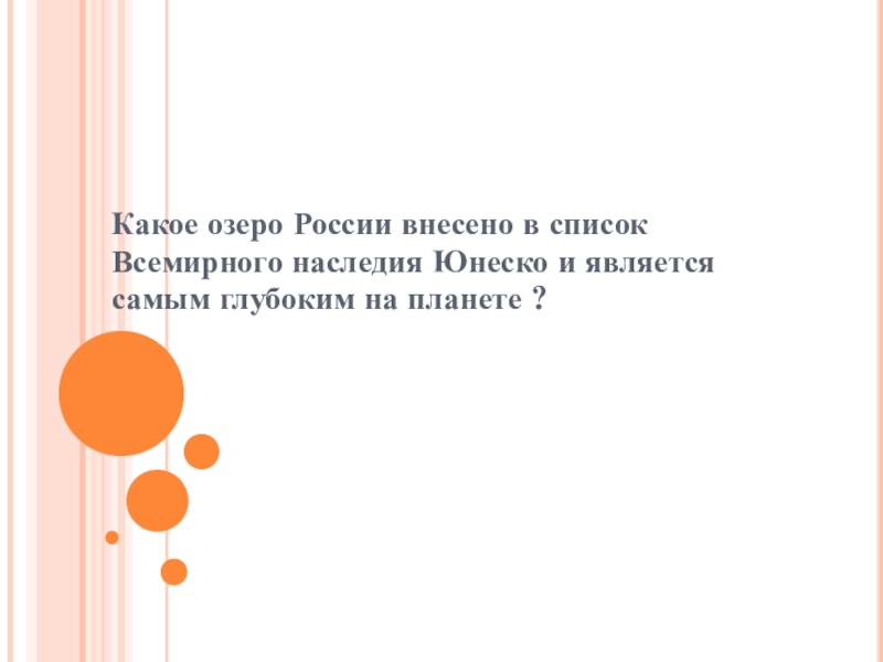 Слайд 18Какое озеро России внесено в список Всемирного наследия Юнеско и является