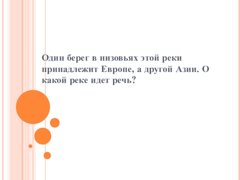 Слайд 26Один берег в низовьях этой реки принадлежит Европе, а другой Азии.