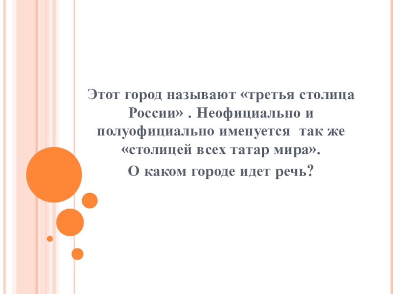 Этот город называют «третья столица России» . Неофициально и полуофициально именуется так же «столицей всех татар мира».О