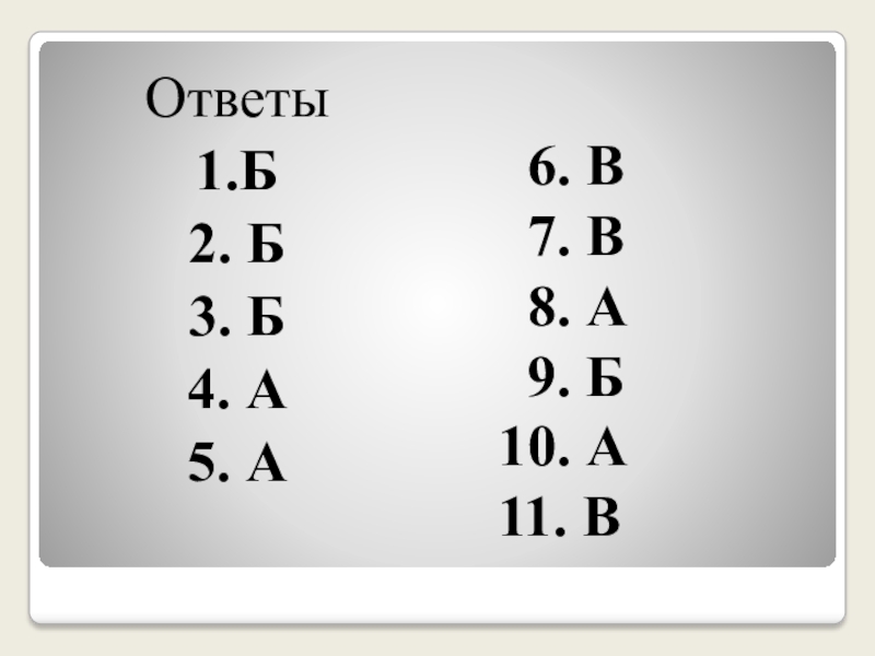 Ответы1.Б2. Б3. Б4. А5. А  6. В  7. В  8. А  9. Б