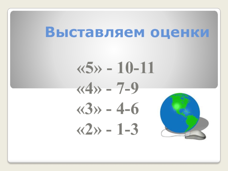 Выставляем оценки   «5» - 10-11«4» - 7-9«3» - 4-6«2» - 1-3