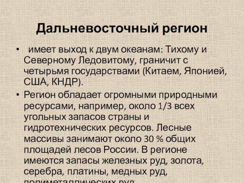 Слайд 6Дальний Восток богат сырьевыми ресурсами.