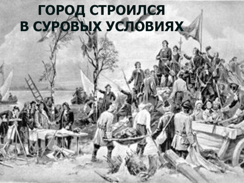 Слайд 4ГОРОД СТРОИЛСЯ В СУРОВЫХ УСЛОВИЯХ