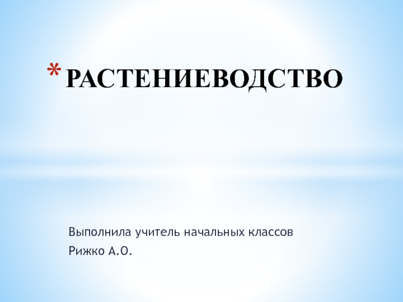 Выполнила учитель начальных классов Рижко А.О.РАСТЕНИЕВОДСТВО